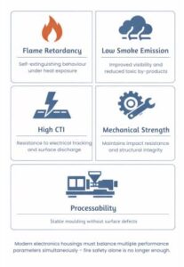 In the past, flame retardancy in electronics housings was often treated as a compliance exercise – pass UL94, move on.